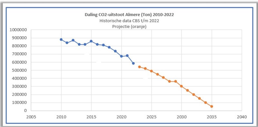 Soebroto: “De oranje projectielijn is een ‘hooplijn’. Als we de trend kunnen vasthouden, zijn we ruim voor het geplande jaar al bijna CO2-neutraal.“