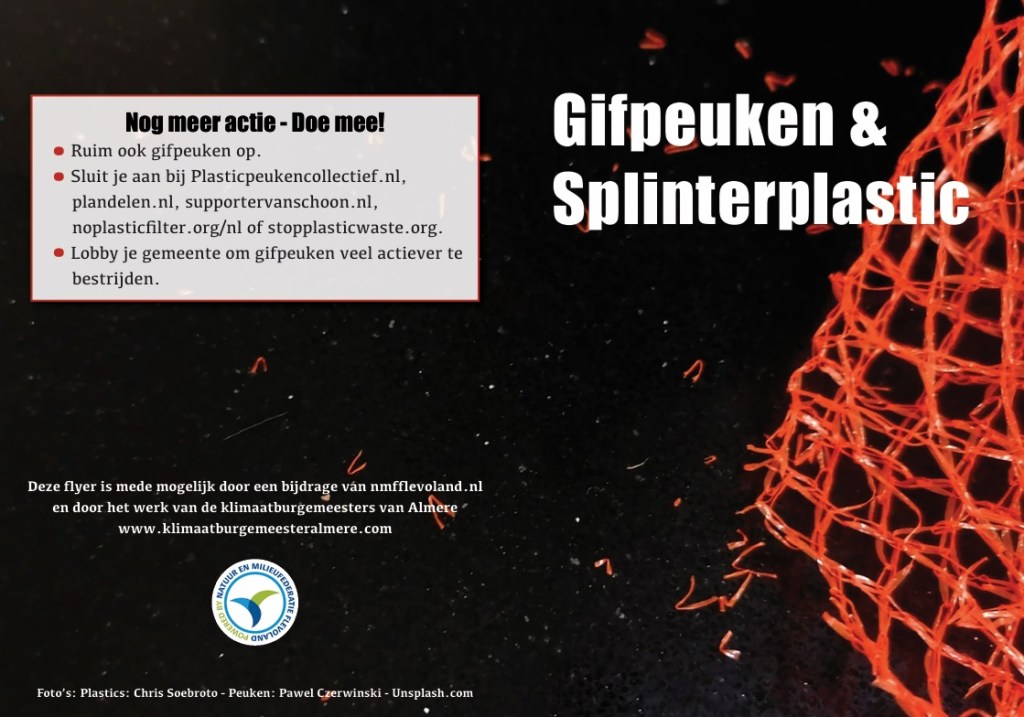 Iedereen krijgt ermee te maken. DOWNLOAD de flyer Gifpeuken & Splinterplastic (PDF). Ontdek wat jij kunt DOEN tegen splinterend plastic en giftige peuken.