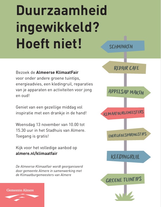 Gemeente Almere organiseert de KlimaatFair in of rond de Landelijke Klimaatweek in november.