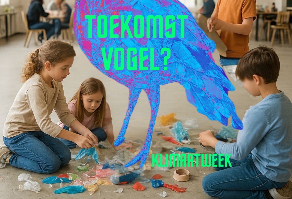 Hoe ziet een vogel eruit in de toekomst, nu er door klimaatverandering en milieuvervuiling steeds minder vogels zijn? Kids maken samen een grote Toekomstvogel met hergebruik van materialen. De vogel herrijst onder begeleiding van kunstdocent Mannie Krak.