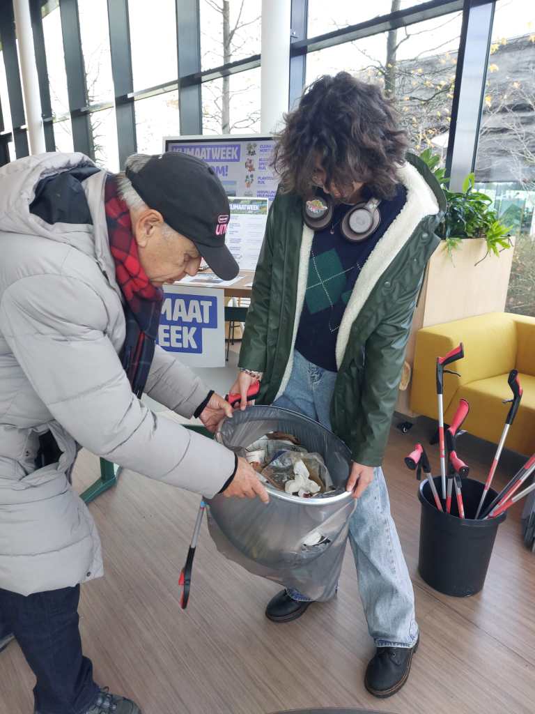 Bij Aeres Hogeschool opende klimaatbrugemeester Chris Soebroto de Klimaatweek Almere op maandag 10 november. Na een praatje over afval ging hij samen met studenten buiten met de prikkers aan de CleanUp .